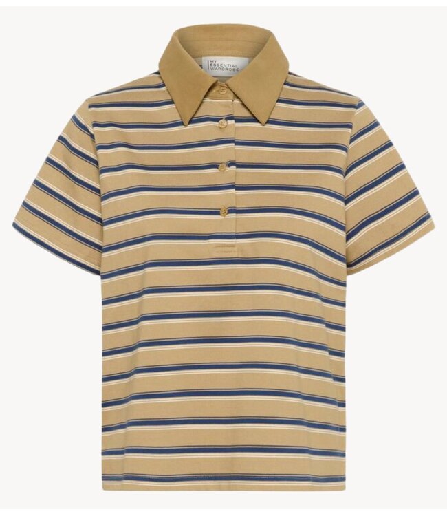 Polo tee van My Essential Wardrobe in Light Capers stripe met sportieve kraag en comfortabele pasvorm, perfect voor een frisse en casual look.