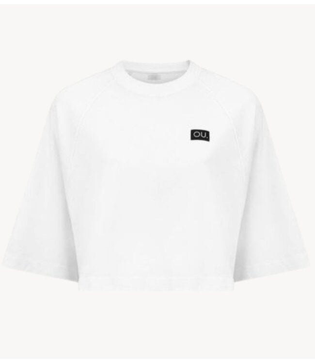 Tee Batille Blanche heeft een cropped/ oversized pasvorm met een logo/ OU. detail op de voorzijde.