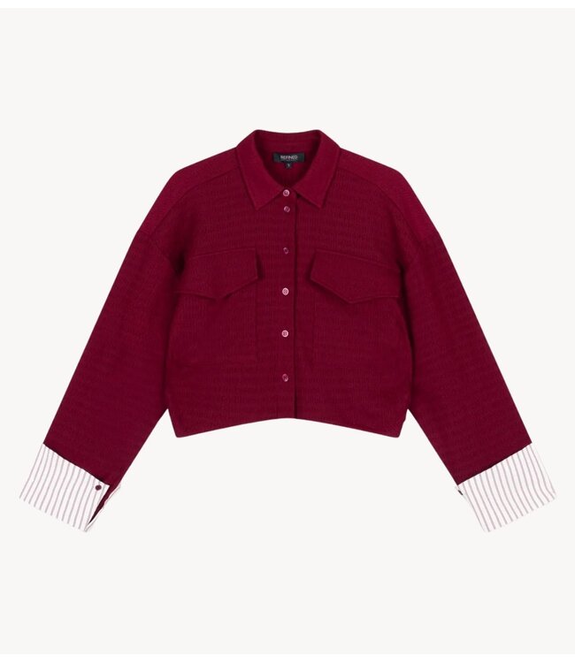 Cropped blouse van Refined Department met een oversized pasvorm, gemaakt van een rekbare stof met een ingebreide textuur. Ontworpen met twee borstzakken, een sluiting met knopen over de volledige lengte en een klassieke kraag.