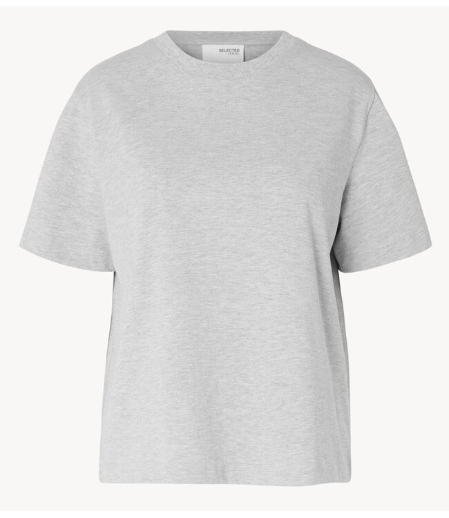 Light Grey Melange boxy T-shirt met korte mouwen en relaxte pasvorm voor een casual, tijdloze look.
