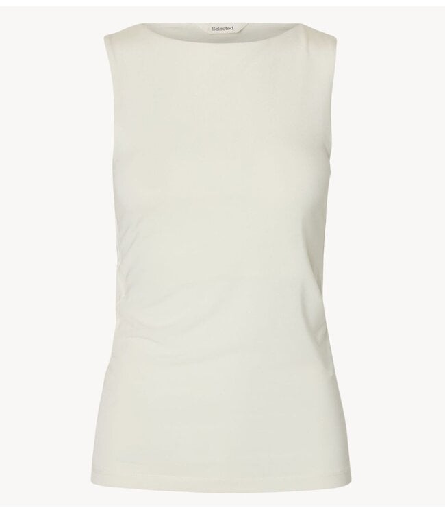 Je hebt twee keuzes met deze omkeerbare mouwloze top. Toon de ronde hals of draai hem om en draag hem als top met hoge halslijn, maar net waar je zin in hebt. Style hem met een plooibroek en leren ballerina's.