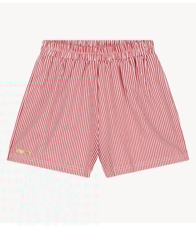 Easy, luchtig en perfect voor zonnige dagen. De Lua Shorts hebben een relaxed fit met elastische tailleband, steekzakken en speelse rode strepen voor die effortless summer vibe. Licht en veelzijdig, draag ‘m los of met de bijpassende blouse. Jouw go-to voor relaxte looks met een twist.