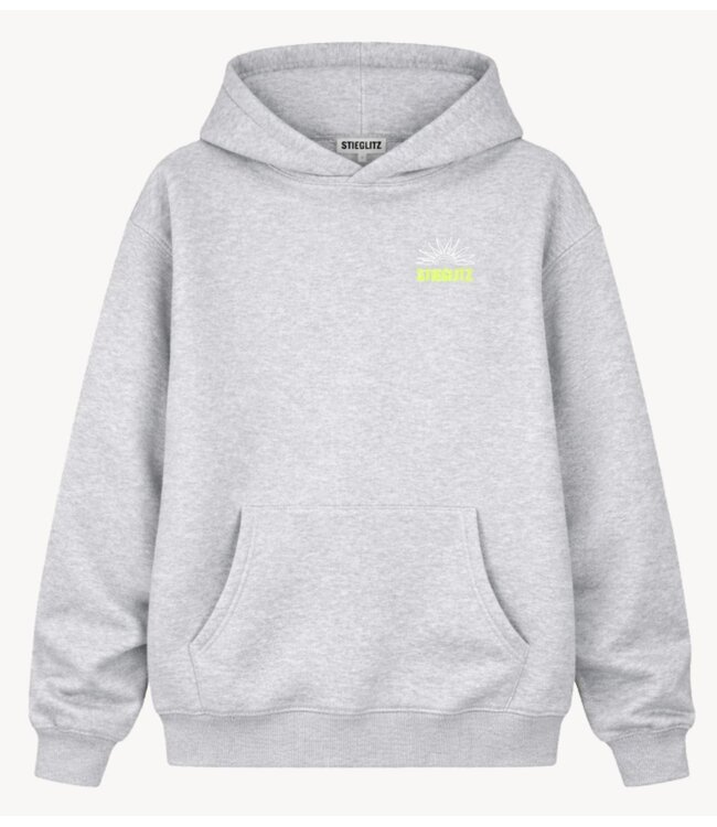 Oversized hoodie met subtiel borstlogo en opvallende back print. Easy en cozy.