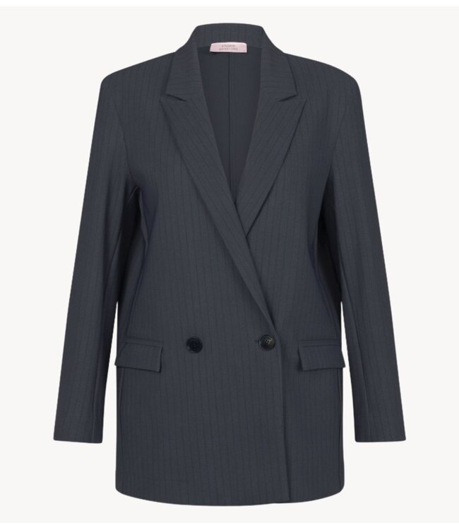 De Dokus bonded pinstripe blazer van Studio Anneloes is een krachtige stijlstatement met een moderne twist. Dankzij de oversized fit en krijtstreep in Dark Blue straalt dit jasje elegantie uit. De blazer is gemaakt van Bonded Travelstof, wat zorgt voor een stevige structuur en een comfortabele pasvorm. Hierdoor is die ideaal voor zowel zakelijke als casual looks.