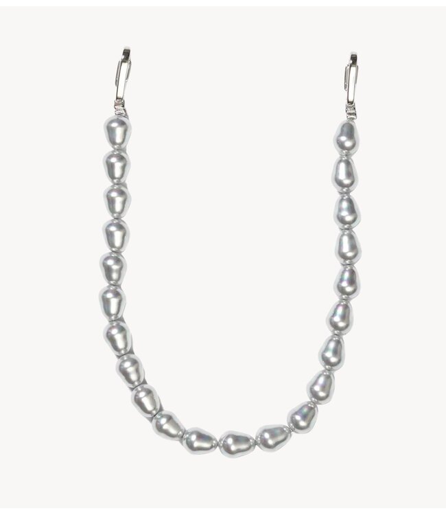 Telefoonkoord van het merk Ateljé. Maak kennis met het Pearlcore-telefoonsnoer, maar dan van metaal. Zilverkleurig, elegant en vormgegeven als kleine kogeltjes.