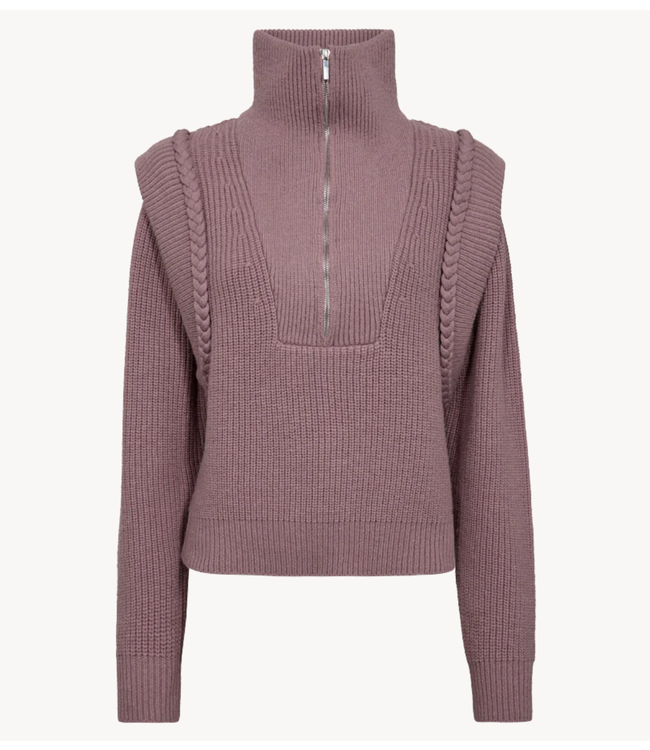 CMYARI-PULLOVER is een trui met lange mouwen, gemaakt van een hoogwaardige, zachte stof. Het model heeft een losse pasvorm, een hoge hals met ritssluiting en brede schouders. Brede ribboorden en een subtiel gevlochten detail zorgen voor een casual look.