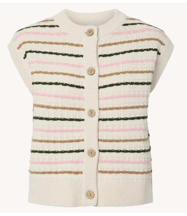 Pristine multi stripes YASNILO gebreid vest met comfortabele, relaxte pasvorm en kleurrijk streeppatroon.